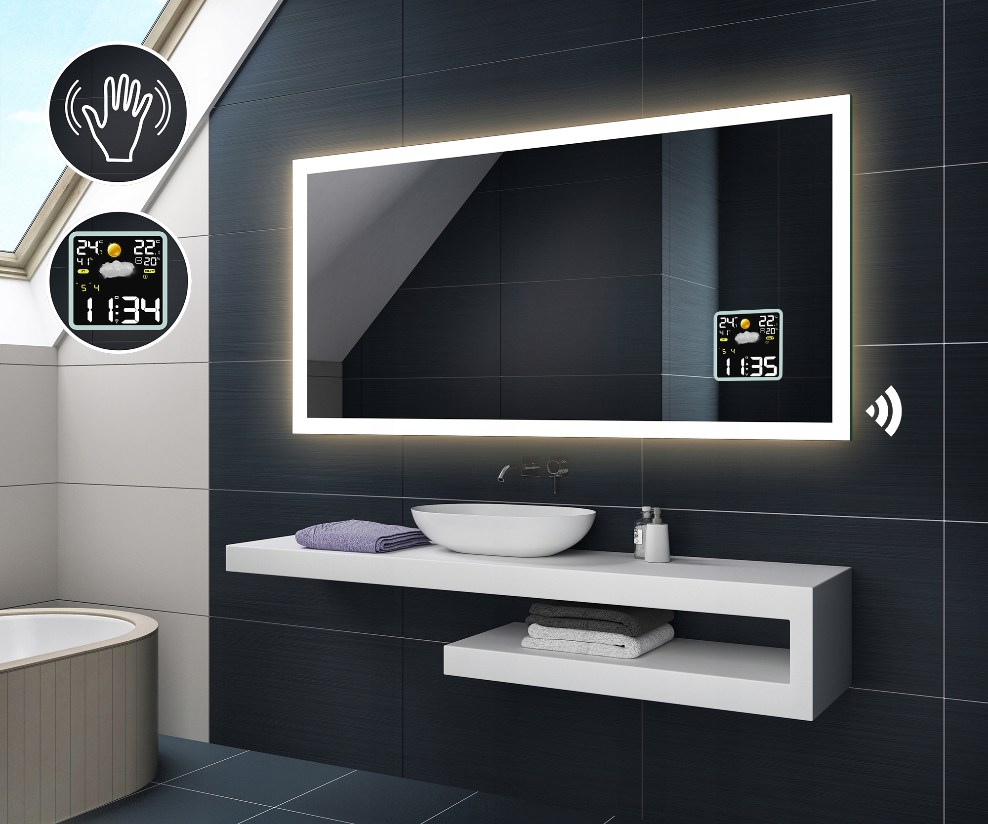 Lustro łazienkowe Linea LED z oświetleniem LED ...